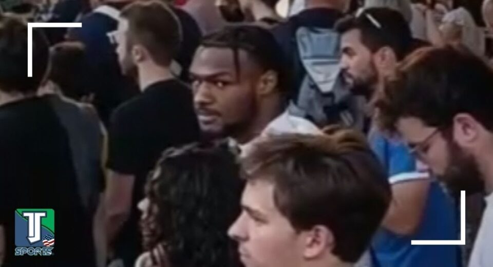Waiting for #TeamUSA with #BronnyJames and his GF at #Paris2024 #Olympics 🍵 If you are enjoying our content, you could buy us a coffee by becoming a member of the TJ