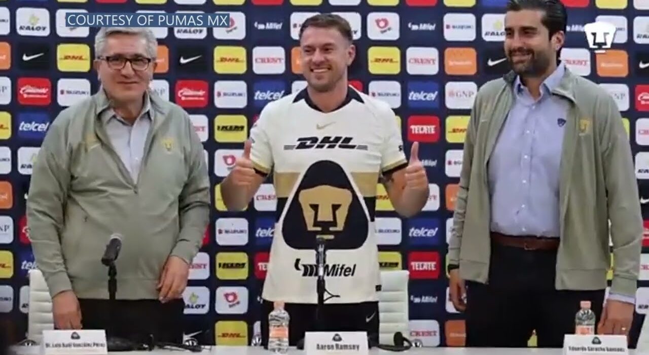 Aaron Ramsey wears the Pumas UNAM jersey for the first time.